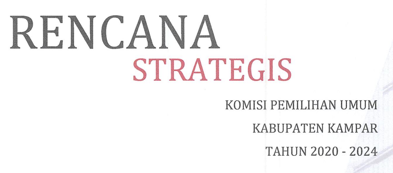 Berikut disampaikan RENCANA STRATEGIS KOMISI PEMILIHAN UMUM KABUPATEN KAMPAR TAHUN 2020-2024, Dokumen lengkap dapat diakses melalui link dibawah ini: