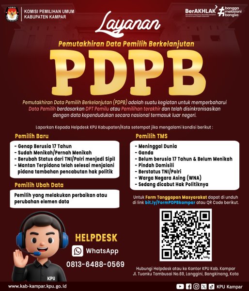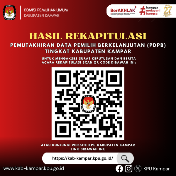 Berikut disampaikan Hasil Pemutakhiran Data Pemilih Berkelanjutan (PDPB) Triwulan II Tahun 2025. SK dan BA Rekapitulasi Pemutakhiran Data Pemilih Berkelanjutan (PDPB) Triwulan II Tahun 2025 dapat diunduh melalui link berikut ini: