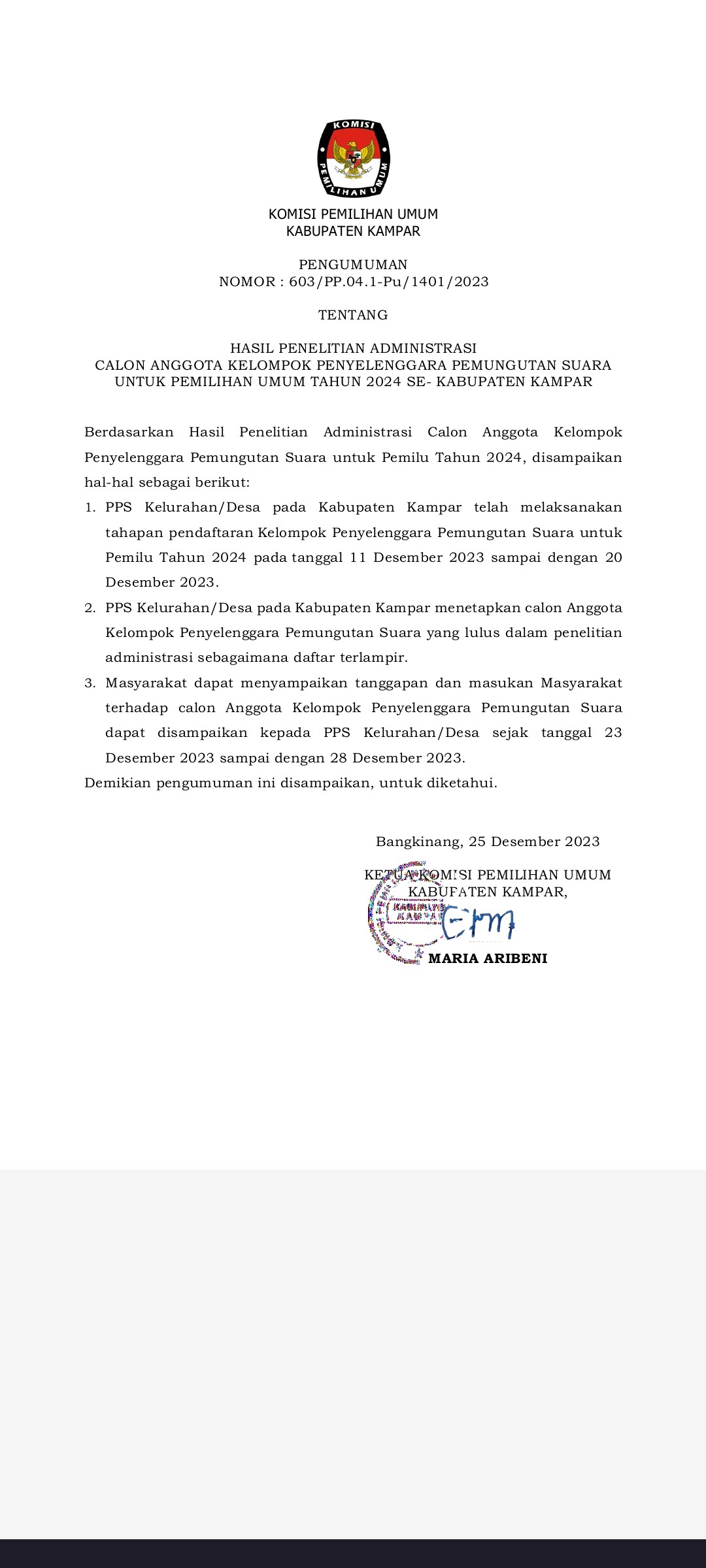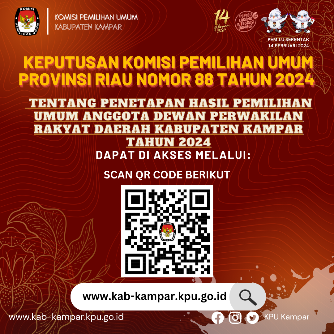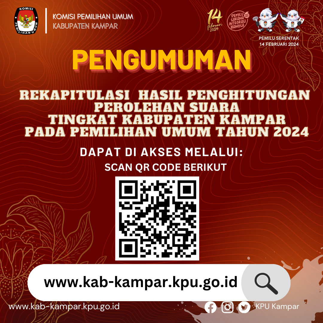 Berikut Disampaikan Pengumuman Rekapitulasi Hasil Penghitungan Perolehan Suara Pada Kabupaten Kampar Tahun 2024