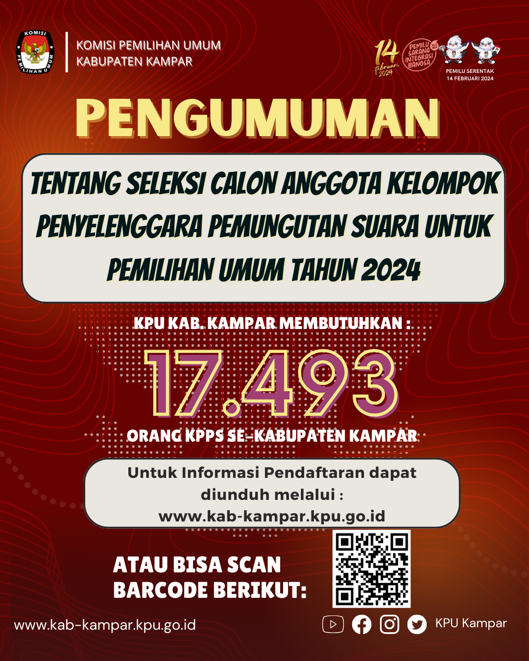 BERIKUT DISAMPAIKAN PENGUMUMAN NOMOR: 564/PP.04.1-Pu/1401/2023 TENTANG SELEKSI CALON ANGGOTA KELOMPOK PENYELENGGARA PEMUNGUTAN SUARA UNTUK PEMILIHAN UMUM TAHUN 2024