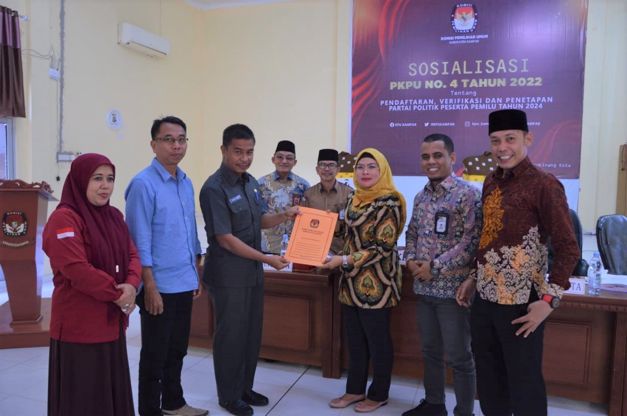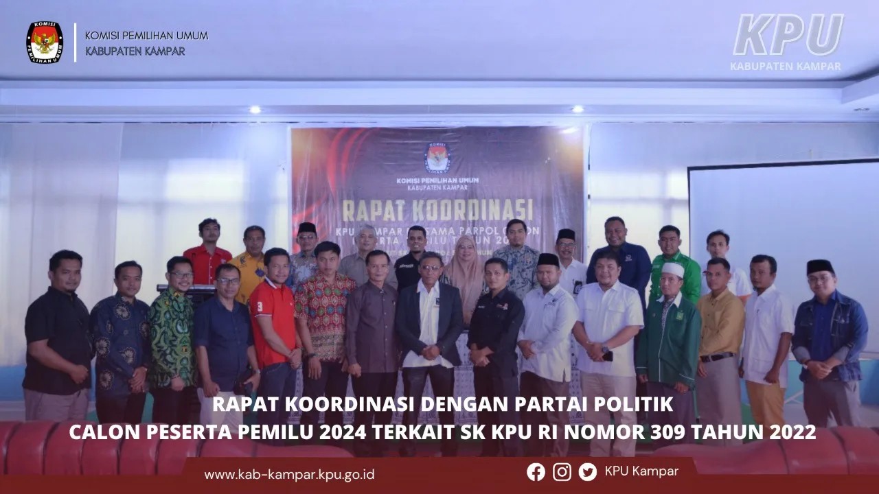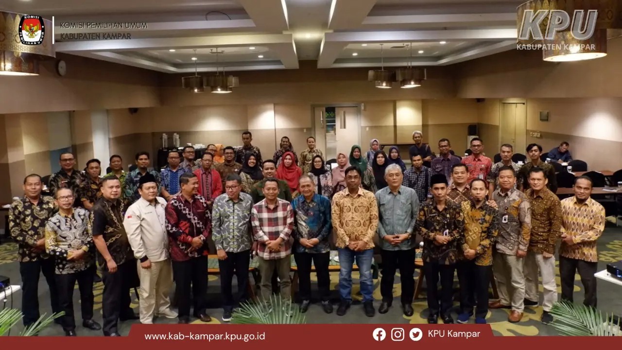 KPU Kabupaten Kampar mengadakan Rapat Koordinasi Pelaksanaan Verifikasi Dokumen Persyaratan Partai Politik Calon Peserta Pemilihan Umum Tahun 2024 bersama Narahubung (LO) Partai Politik di taman rekreasi Stanum, Bangkinang Kota Kamis (1/9/22). Dalam sambutannya, Ketua KPU Kabupaten Kampar, Maria Aribeni menyampaikan bahwa tujuan digelarnya acara Rakor KPU bersama Narahubung/ LO Parpol tersebut untuk membahas Pelaksanaan Tindakan lanjut hasil Verifikasi Administrasi oleh Partai Politik Calon Peserta Pemilihan Umum Tahun 2024. “acara ini merupakan bagian dari langkah KPU untuk menjaga komunikasi dengan kawan-kawan Parpol terhadap hal-hal atau kendala-kendala yang dihadapi dalam masa tindak lanjut hasil vermin,” ujar Maria Aribeni. Maria menegaskan bahwa, dalam melaksanakan verifikasi administrasi, KPU Kabupaten Kampar mengacu kepada PKPU Nomor 4 Tahun 2022 dan KPTS KPU RI Nomor 309 Tahun 2022 tentang perubahan atas keputusan KPU Nomor 260 Tahun 2022. Dia juga menambahkan KPU Kabupaten Kampar juga telah menyediakan ruang Helpdesk sebagai media atau sarana pelayanan konsultasi bagi Partai Politik. Sementara Komisioner Divisi Teknis penyelenggaraan Pemilu KPU Kabupaten Kampar, Ahmad Dahlan saat menyampaikan materi Rakor memaparkan poin-poin penting yang harus diketahui Partai Politik terkait tindak lanjut hasil verifikasi administrasi oleh Partai Politik terhadap dugaan keanggotaan ganda dan keanggotaan yang berpotensi tidak memenuhi syarat keanggotaan yang berlangsung dari tanggal 19 Agustus s/d 3 September 2024. “Hal itu mengacu ke Keputusan KPU Nomor 308 Tentang Perubahan Atas Kpts KPU Nomor 259 Tahun 2022 Tentang Pedoman Teknis Bagi Komisi Pemilihan Umum, Komisi Pemilihan Umum Provinsi dan Komisi Pemilihan Umum Kabupaten/Kota dalam Pelaksanaan Pendaftaran, Verifikasi dan Penetapan Partai Politik Peserta Pemilihan Umum Anggota Perwakilan Rakyat dan Dewan Perwakilan Rakyat Daerah,” jelas Ahmad Dahlan. Dalam kegiatan tersebut, tampak hadir Anggota KPU Provinsi Riau, Jhoni Suhaidi, Anggota KPU Kabupaten Kampar lainnya, Sekretaris KPU Kabupaten Kampar, Kasubbag Teknis KPU Provinsi Riau, Mulyadi dan kasubbag serta staf di lingkungan KPU Kampar.