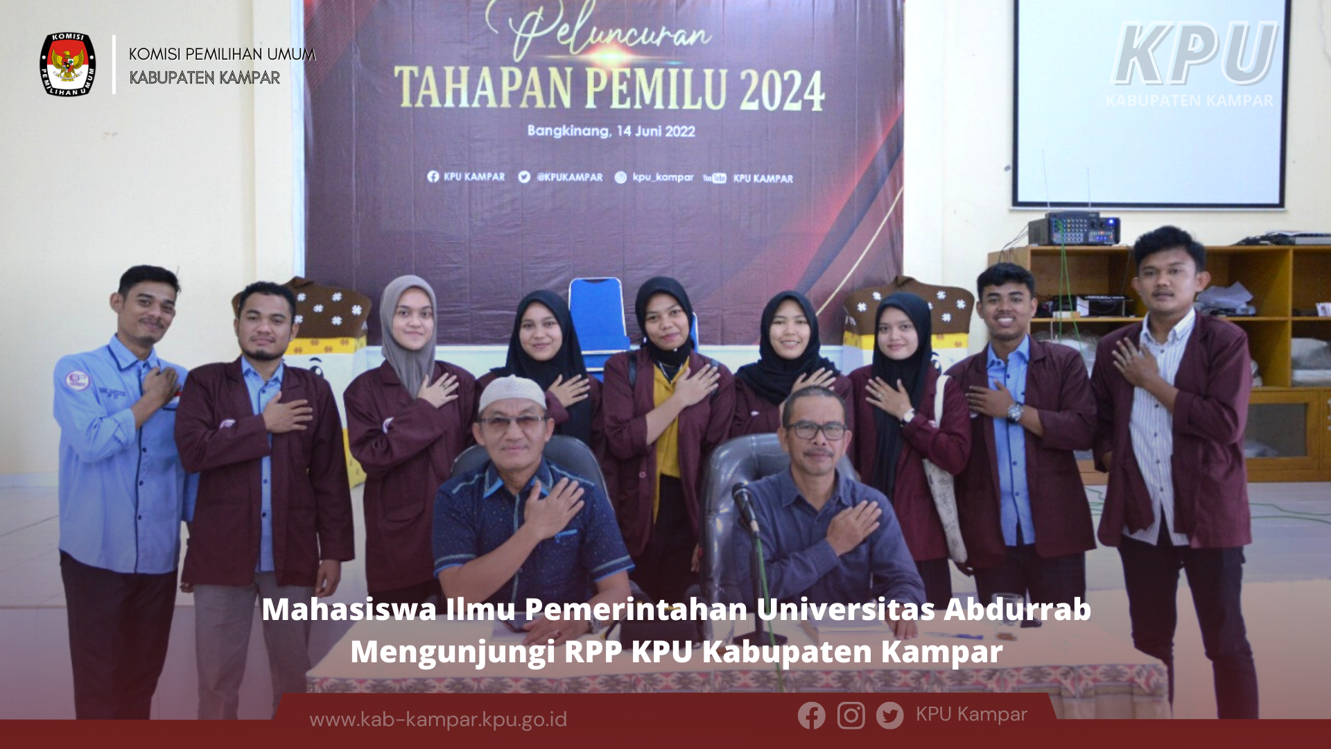 KPU Kabupaten Kampar sudah melakukan sejumlah langkah persiapan menyongsong tahapan Pemilu 2024 mendatang yang diperkirakan tahap ditingkatan kabupaten akan dimulai pada awal Agustus 2022. Hal itu diungkapkan Ketua Komisi Pemilihan Umum (KPU) Kabupaten Kampar, Maria Aribeni, S.Si.,M.Si saat menjadi narasumber dalam acara Sosialisasi Pengawasan Pemilu Partisipatif Tahun 2024 yang digelar Bawaslu Kabupaten Kampar (14/04/2022). Acara yang berlangsung di auditorium SMA Muhammadiyah Bangkinang tersebut diikuti oleh Ormas, mahasiswa, media massa dan kelompok elemen masyarakat strategis lainnya. Sejumlah langkah yang dimaksud Maria Aribeni antara lain terlaksananya sejumlah kegiatan yang berkaitan dengan tahapan Pemilu. Antara lain kunjungan koordinasi ke 21 kecamatan dengan melibatkan 250 desa yang ada di seluruh Kabupaten Kampar dalam rangka pemutakhiran data pemilih berkelanjutan. "Kegiatan pemutakhiran data pemilih berkelanjutan ini juga bertujuan untuk meningkatkan partisipasi pemilih pada Pemilu mendatang. Karena melalui kegiatan ini kita menghimpun data warga yang tidak terdaftar, untuk dimasukkan ke dalam daftar Pemilih Pemilu 2024," jelas Maria Aribeni. Selain itu, KPU Kampar juga sudah melaksanakan agenda kunjungan koordinasi ke sejumlah Partai Politik peserta Pemilu 2019 dan calon peserta Pemilu 2024. Sementara Ketua Bawaslu Kabupaten Kampar Syawir Abdullah, SH yang didampingi Kordiv Pengawasan Marhaliman, SE., MM, Kordiv SDM dan Organisasi Amin Hidayat, SH.I., MM, Kordiv Hukum, Humas, Data dan Informasi Edwar, SS., M.IP, Kordiv Penyelesaian Sengketa Witra Yeni, S.IP., M.Si dalam sambutannya mengatakan Kegiatan Sosialisasi Pengawasan Pemilu Partisipatif Tahun 2024 betujuan untuk menginformasikan dan mensosialisasikan seluruh persiapan dan tahapan pelaksanaan Pemilu 2024 yang akan datang. Dari kegiatan tersebut diiharapkan dapat meningkatkan partisipasi masyarakat sebagai pemilih dalam Pemilu 2024. Kegiatan sosialisasi juga diharapkan dapat menimalisir dan mengantisipasi pelanggaran yang terjadi di Pemilu 2024 nantinya, ungkap Syawir Abdullah. Senada dengan Syawir, Ketua Bawaslu Provinsi Riau Rusidi Rusdan, S. Ag., M. Si yang juga hadir dalam acara tersebut mengatakan, bahwa kegiatan sosialisasi Pengawasan Pemilu Partisipatif tahun 2024 sangat penting dilaksanakan. Kegiatan ini sangat penting untuk didiskusikan terutama tentang peran penting generasi muda dan pemilih pemula pada Pemilu tahun 2024. Rusidi Rusdan mengatakan, peran penting kelompok masyarakat strategis, seperti Ormas, perguruan tinggi, dan media sangat penting dalam mensosialisasikan seluruh persiapan dan tahapan pelaksanaan Pemilu 2024. Kelompok masyarakat strategis selalu menjadi acuan dan inspirasi bagi masyarakat dalam mendapatkan informasi tentang persiapan dan tahapan pelaksanaan Pemilu tahun 2025, ungkap Rusidi Rusdan.