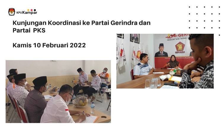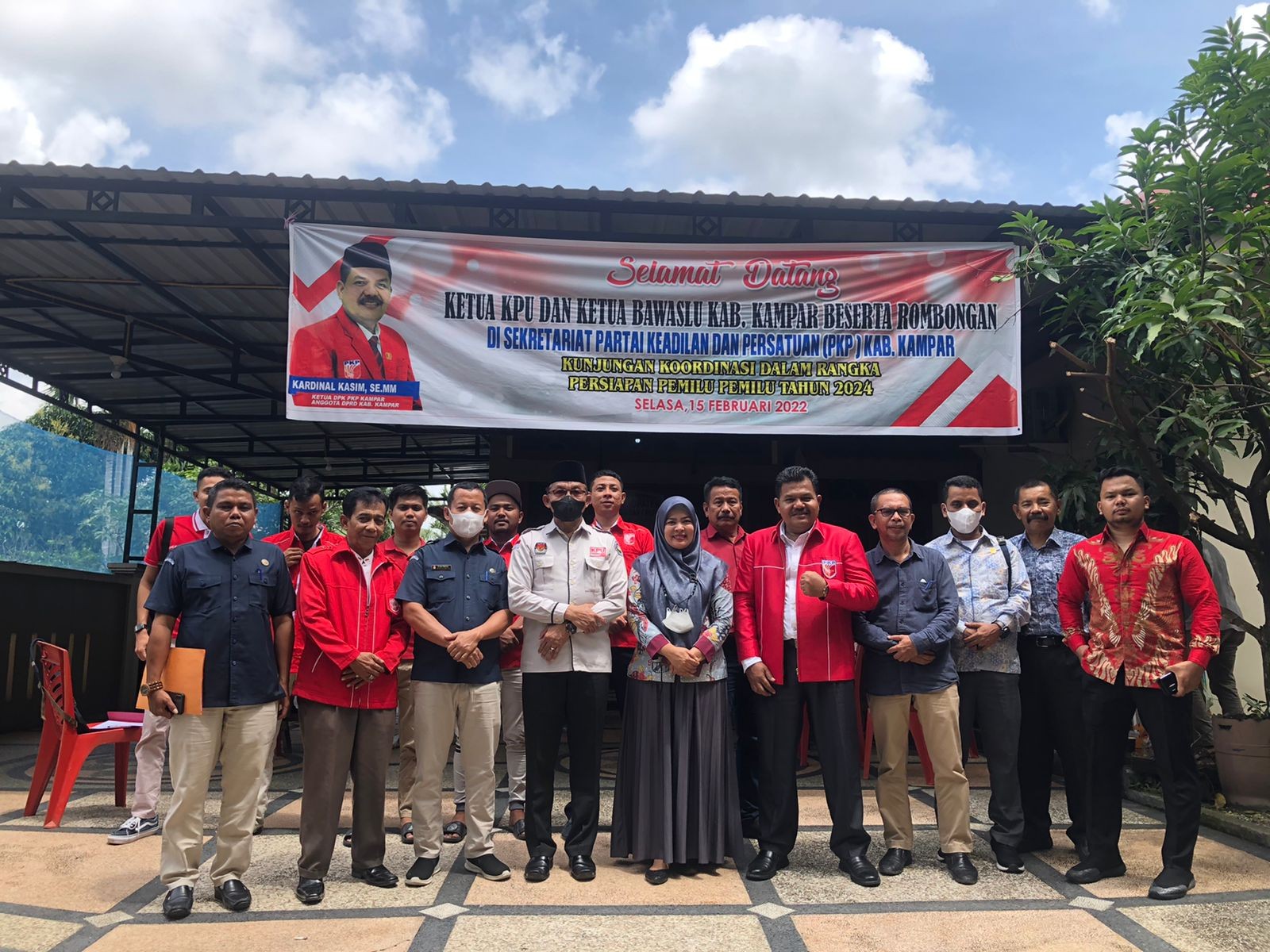 Masih dalam rangkaian kunjungan yang sama, Komisi Pemilihan Umum (KPU) Kabupaten Kampar kembali melakukan kunjungan Koordinasi ke Partai PDI Perjuangan di Jalan Jenderal Sudirman, Bangkinang Kota, Senin (14/02/2022) Ketua KPU Kabupaten Kampar, Maria Aribeni, S.Si, M.Si dalam sambutannya mengatakan bahwa kunjungan kordinasi ini merupakan tindak lanjut dari surat Keputusan KPU RI Nomor 21 Tahun 2022 tentang Hari dan Tanggal Pemungutan Suara pada Pemilu dan Pemilihan 2024 mendatang. “jadwal Pemilu 2024 mendatang sudah ditetapkan. Dan ini menjadi penting untuk kita sosialisasikan kepada Parpol peserta Pemilu 2019 yang lalu dan Parpol baru nantinya,” ujar Maria Aribeni. Harapan kami dari kunjungan ini kata Aribeni, agar seluruh Parpol dapat bekerjasama dan berkolaborasi untuk mensukseskan pelaksanaan Pemilu dan Pemilihan 2024 mendatang. “ada beberapa poin penting yang kita sampaikan dalam kunjungan ini, antara lain terkait verifikasi Parpol, Penataan Dapil dan Pemutakhiran Data Pemilih Berkelanjutan (PDPB) yang secara teknis disampaikan masing-masing Divisi,”jelas Maria. Sementara Anggota KPU Kabupaten Kampar Ahmad Dahlan, SE, ME, Sy menegaskan bahwa selain menyampaikan jadwal Pemilu 2024 mendatang, kunjungan koordinasi ke Parpol juga sebagai bentuk konsolidasi demokrasi dan persiapan menghadapi Pemilu dan Pilbub Kabupaten Kampar 2024 mendatang. Dalam kesempatan yang sama, Hanafiah, Ketua DPC PDI-P Kabupaten Kampar menyambut baik kedatangan rombongan KPU Kabupaten Kampar. Hanafiah mengapresiasi langkah yang dilakukan KPU Kampar dalam menyampaikan informasi tentang persiapan Pemilu 2024 mendatang. “kami sangat menyambut baik kedatangan KPU. Dengan demikian kami bisa mempersiapkan diri untuk menghadapi Pemilu 2024 mendatang,” ujar Hanafiah.