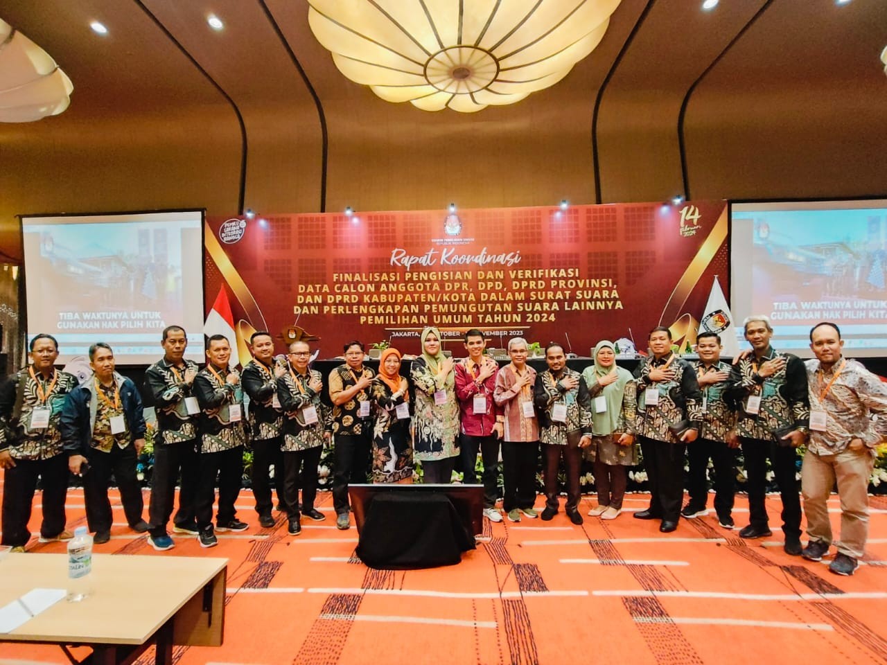 Ketua KPU Kabupaten Kampar Maria Aribeni, anggota KPU Kabupaten Kampar Ahmad Dahlan dan Operator silon Algazali mengikuti Rapat Koordinasi Finalisasi Pengisian dan Verifikasi Data Calon Anggota DPR, DPD, DPRD Provinsi, dan DPRD Kabupaten/Kota Pemilu dalam Surat Suara dan Perlengkapan pemungutan suara lainnya pemilihan umum tahun 2024 gelombang ke III di hotel grand Mercure Jakarta harmoni, Senin (30/10/2023). Dalam Kata sambutannya Ketua KPU Hasyim Asy'ari, menegaskan semua jajarannya harus betul-betul dapat memahami terkait time limit atau batasan durasi waktu, oleh karena itu harus cermat terkait desain, nama, nomor, dapil termasuk menghitungnya. Hasyim pun meminta semua untuk selalu kompak antar anggota dan kesekretariatan bersama-sama merumuskan beban kerja. Kemudian anggota KPU Idham berharap bahwa peserta dapat mencermati dengan fokus dan yakin bahwa proses pencermatan dapat berjalan dengan lancar. menegaskan agar semua jajaran harus betul-betul bisa memahami ruang lingkup tugasnya, apa saja yang harus dikerjakan serta batas waktu pengerjaannya pada setiap tingkatan, di KPU provinsi dan KPU kabupaten/kota. Turut hadir Ketua KPU Hasyim Asy'ari, Anggota KPU Idham Holik dan Betty Epsilon Idroos serta Pejabat Eselon I, II, dan jajaran Sekretariat Jenderal KPU, serta peserta gelombang III yang terdiri dari Ketua, Divisi Teknis, Kasubbag/Operator KPU Provinsi dan KPU Kabupaten/Kota dari 16 Provinsi.